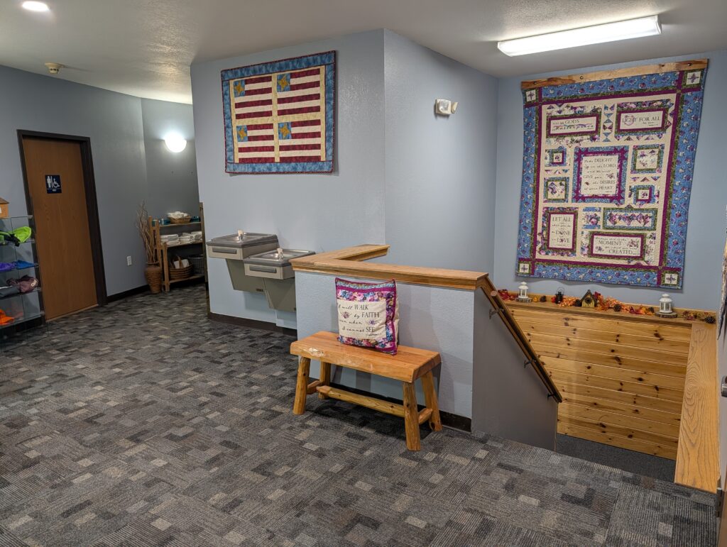 The Conference Room is used for a variety of different groups. The most popular is Quilting and Scrap-booking. You can comfortably seat 50 ladies each at their own 6ft table.