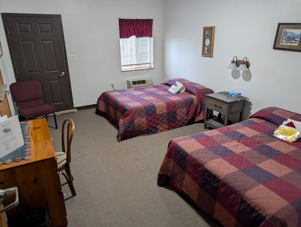 The Retreat Center has 20 Uniquely decorated hotel rooms. Each room can sleep 3-4 people and each have a private bath. They also are climate controlled, and some have a walkout deck.